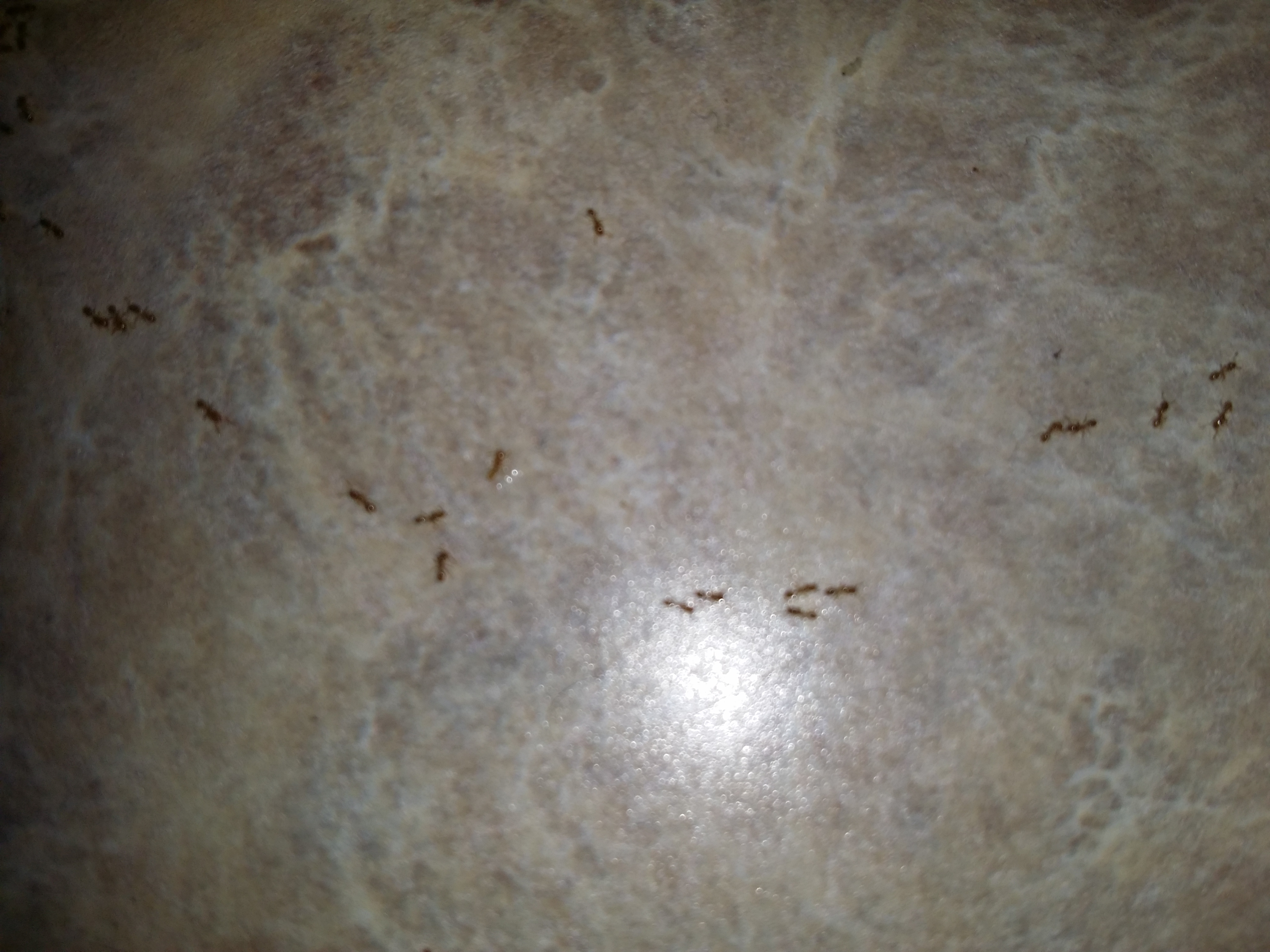 They are very hard to see clearly as they are so utterly small. This is quite a change from the other common outdoors species I have dealt with. One of the problems I had immediately was that I couldn’t follow a trail OUT. You see, in a normal infestation of ants I have always been able to follow the trail to a crack or window. These guys would just appear back on the sink after being wiped away. Once I started researching a bit more, I discovered that some ant species are considered primarily indoor. They live inside buildings and are rarely encountered outside. If the temperature permits and food is available — they will move in to stay. The Pharaoh ant is especially bad about this, many hospitals across the nation have had horrible infestations.